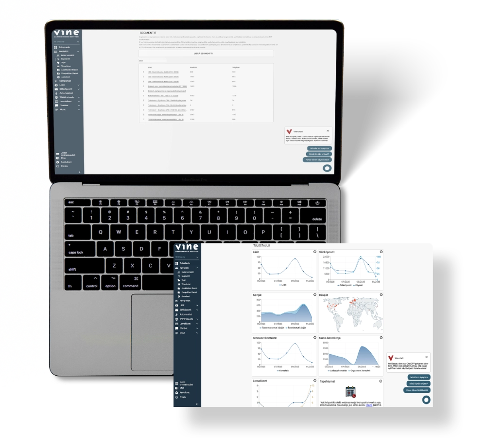 Luo ammattimaisia B2B-sähköpostikampanjoita muutamassa minuutissa. Liidimoottorin sähköpostimarkkinointi yhdistää helppokäyttöiset viestipohjat, automaation ja kohdennetun kontaktidatan yhteen työkalupakettiin, joka tekee uusasiakashankinnasta suoraviivaista ja mitattavaa.
